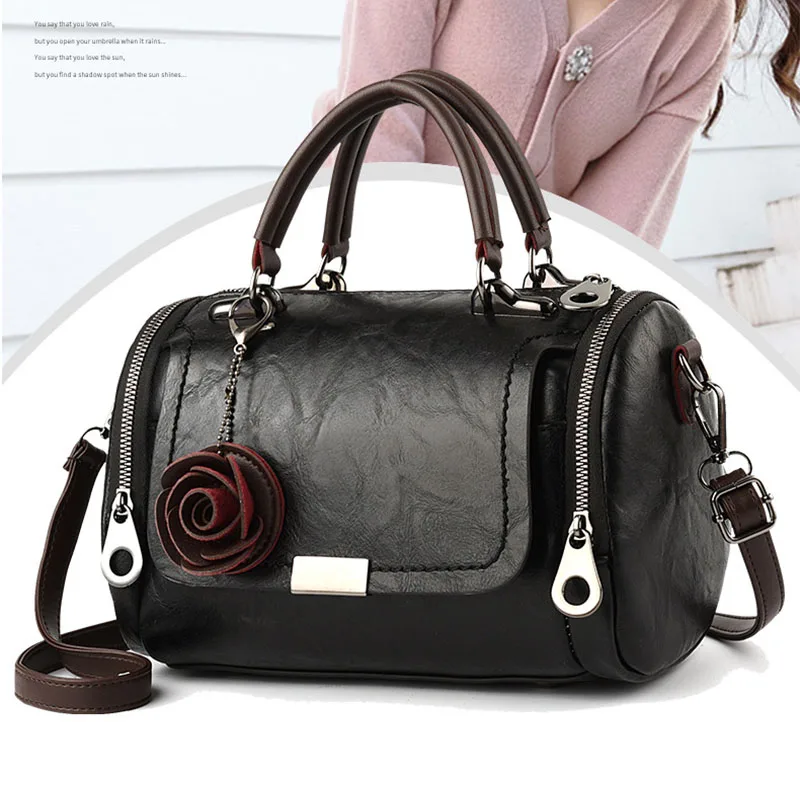 Free shipping Leather Bag For Women 2019 Handbag Luxury Designer Brand Lady Large Capacity Boston Pillow Case Zip